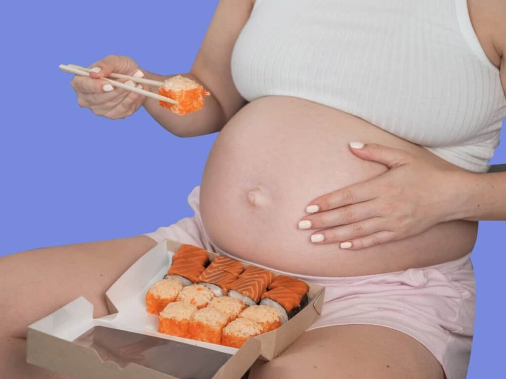 Konzumace ryb – včetně syrových ryb na sushi – je součástí zdravé stravy během těhotenství, pokud jíte ryby s bezpečnými hladinami rtuti. British Medical Journal zdůrazňuje, že ryby jsou v těhotenství mimořádně důležitou látkou. Děti, jejichž matky jedly ryby během těhotenství, měly „vyšší inteligenční kvocient“ než ty, které ryby nejedly, a to díky Omega-3 mastným kyselinám.
