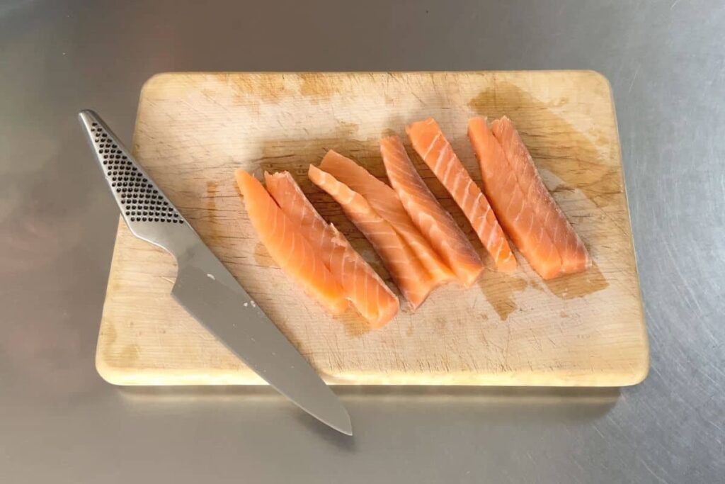- Správné krájení lososa na Sashimi