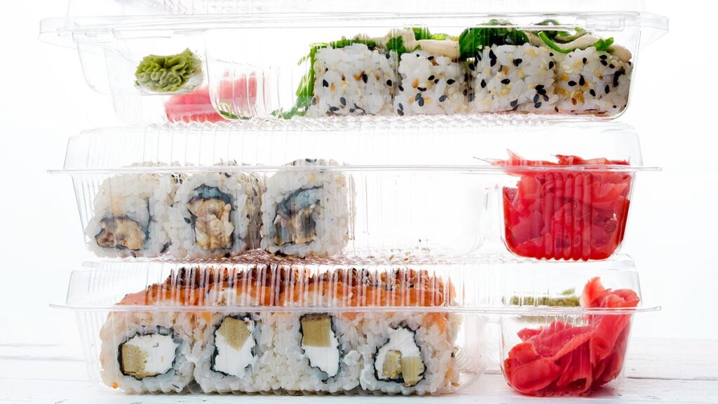 - Fólie nebo potravinová fólie: Pokud nemáte vzduchotěsnou nádobu, zabalte sushi pevně do hliníkové fólie nebo potravinové fólie. Cílem je minimalizovat kontakt sushi se vzduchem.