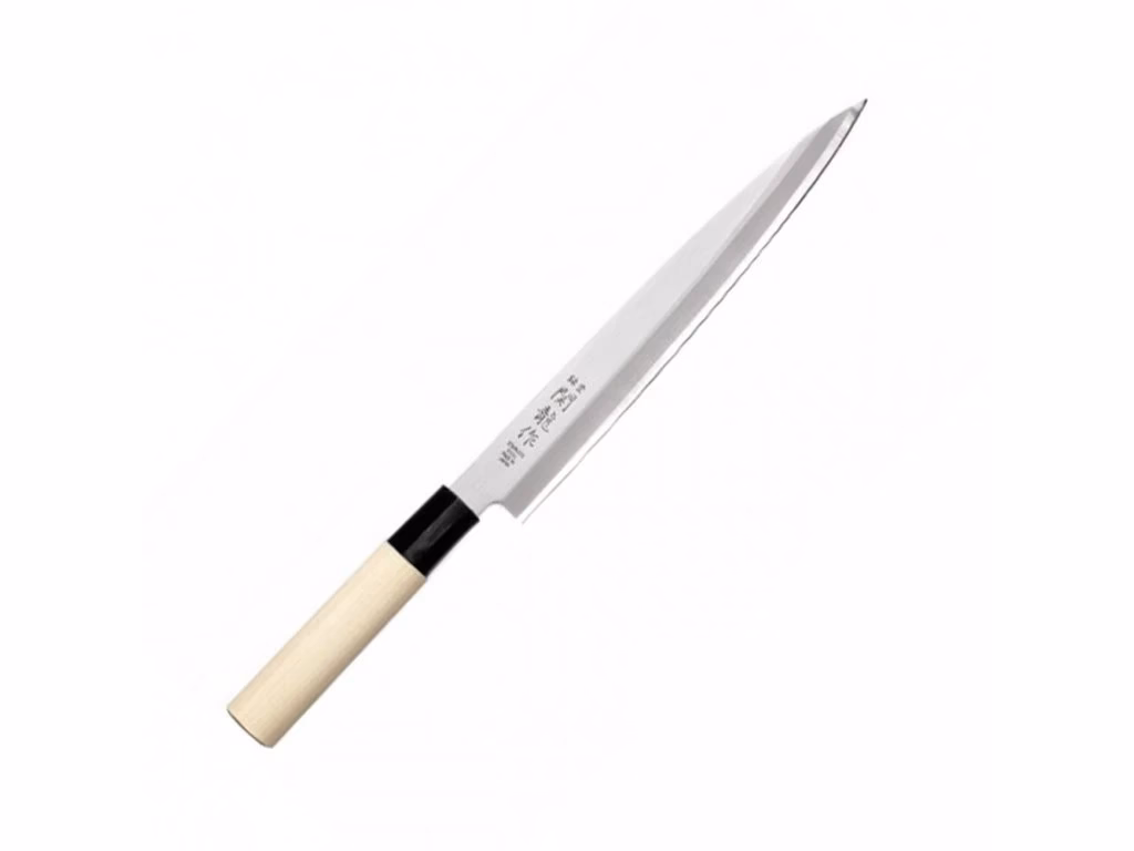 - Yanagiba: Pokročilí kuchaři, zejména ti, kteří se specializují na japonskou kuchyni, uvítají nůž Yanagiba. Jeho čepel má na jedné straně konkávní výbrus a duté ostří. Tato jedinečná geometrie čepele je primárně určena k přípravě sashimi a plátkování různých surovin s neuvěřitelnou precizností. Díky nízkému tření a extrémní ostrosti vytváří Yanagiba dokonalé, lesklé řezy, které jsou pro prezentaci sushi a sashimi klíčové.