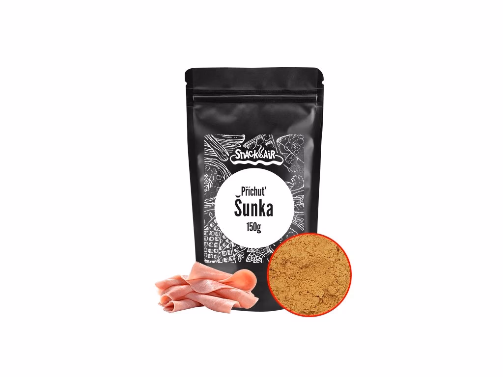 - Do 10 litrů čerstvého popcornu (což je poměrně velké množství, ekvivalent několika velkých misek) nasypte 30 g práškové příchutě šunka-sýr.