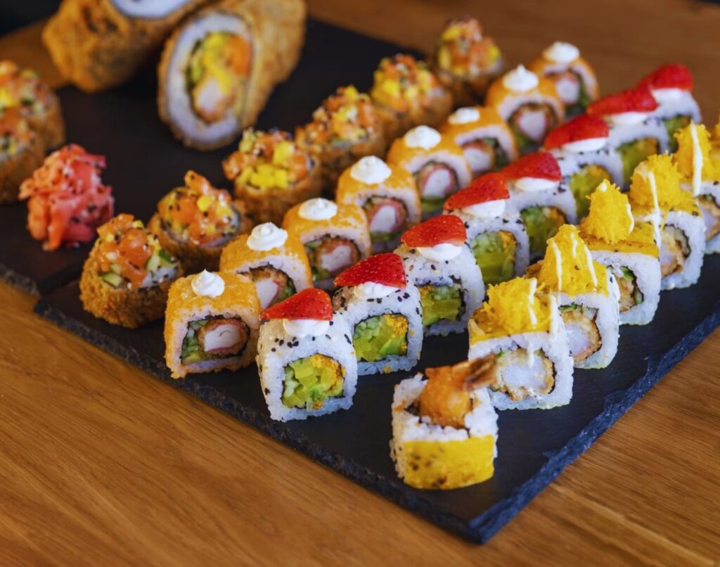 - Nízký obsah tuku (u některých druhů): Mnoho druhů sushi je relativně nízkotučných, pokud se vyhnete příliš mnoha krémovým omáčkám nebo smaženým náplním.